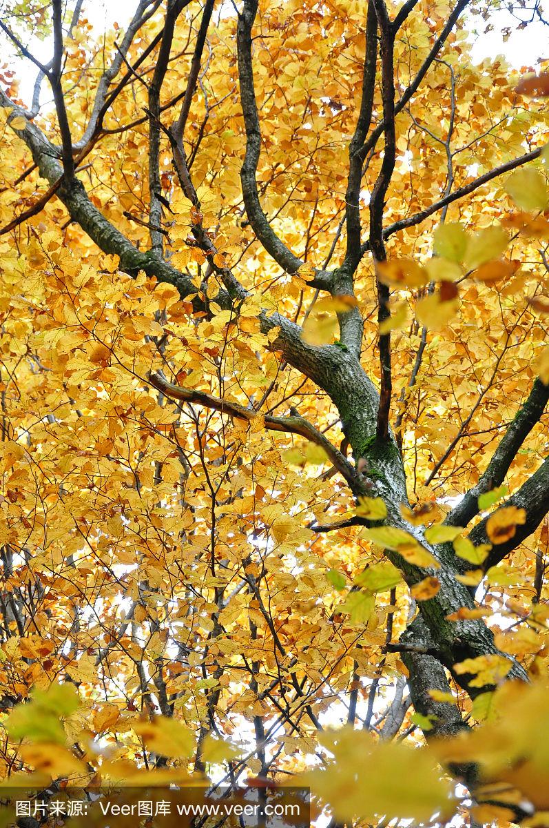 叶子,秋天,红榉,欧洲山毛榉,垂直画幅