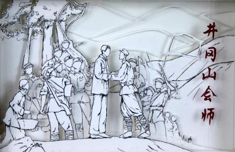 纸雕《井冈山会师》封浜高级中学 吴春媛竹刻《红船精神》嘉定区实验