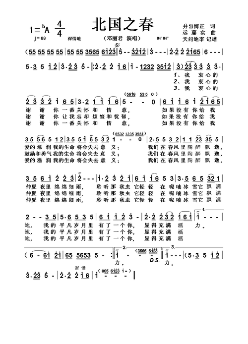 (邓丽君演唱)) / lovequpu传谱相关歌谱:[简谱]北国之春(日本电影