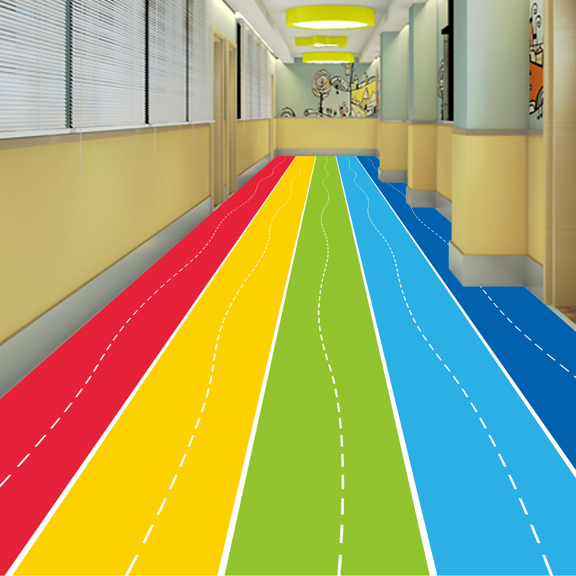 原色高品质墙贴地贴的优惠券大全—彩虹跑道地贴纸防水走廊赛道卡通