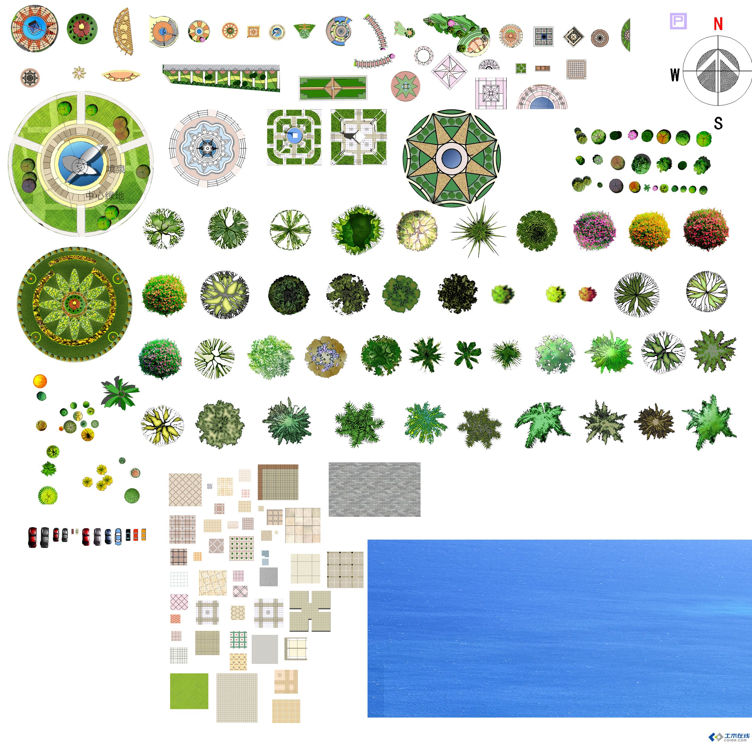 手绘水彩彩平psd外国真实高清景观树木平面psd国际素材