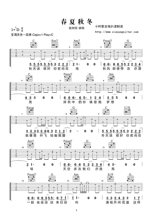 春夏秋冬(弹唱)吉他谱(图片谱,弹唱)_张国荣(leslie cheung)_chunxia