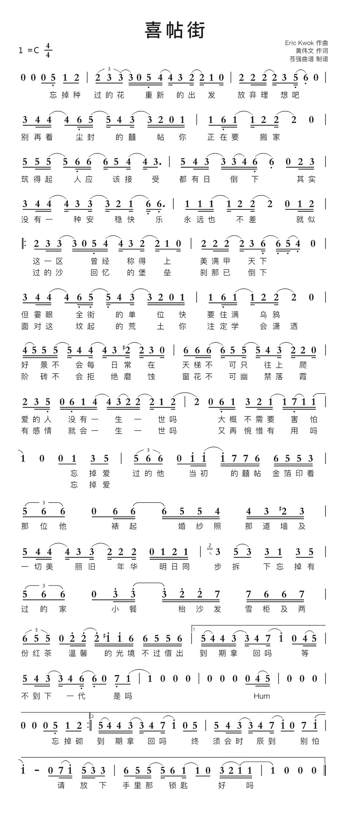 喜帖街_简谱_搜谱网