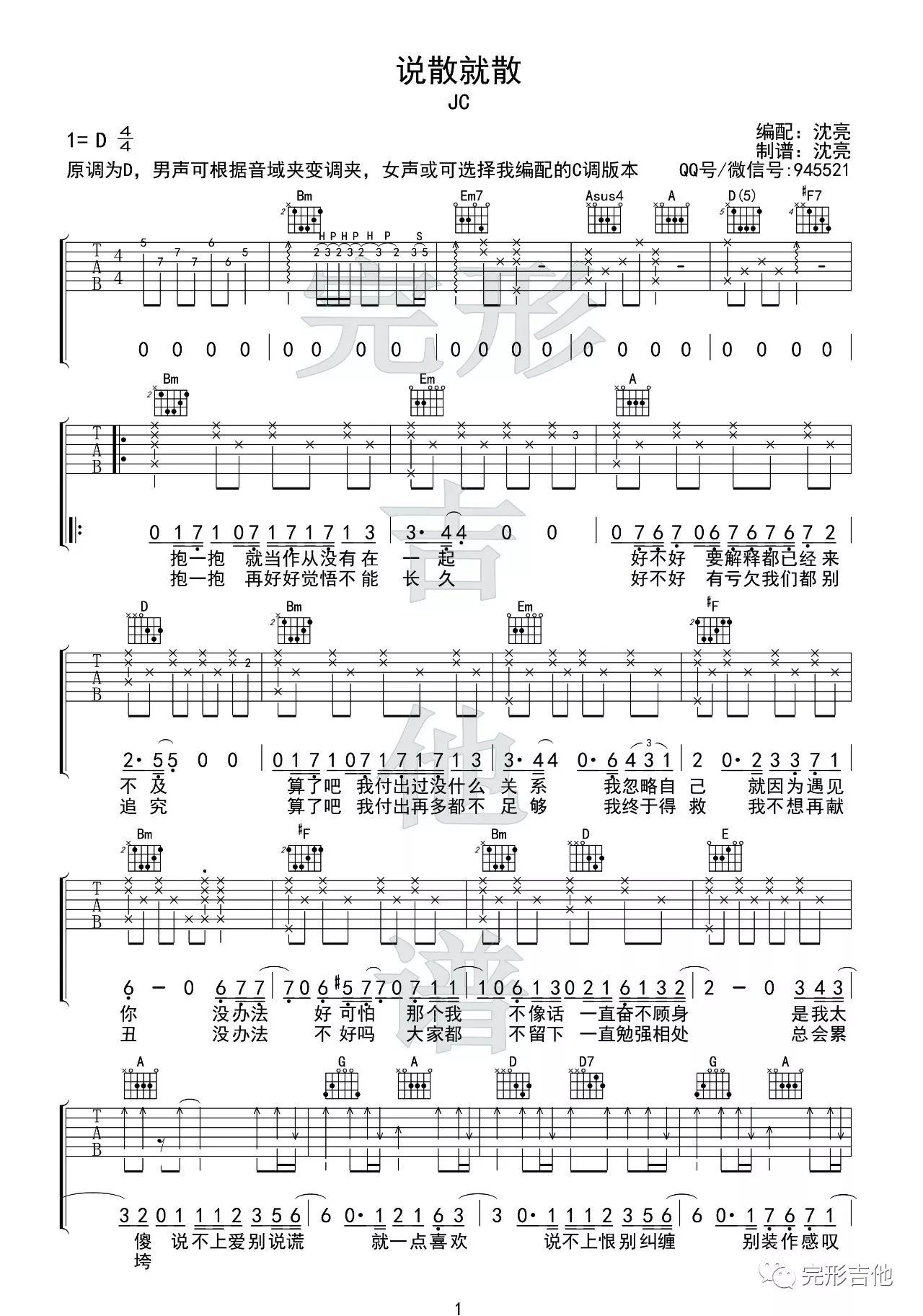 《说散就散吉他谱》袁娅维_c调原版图谱_网络转载制谱