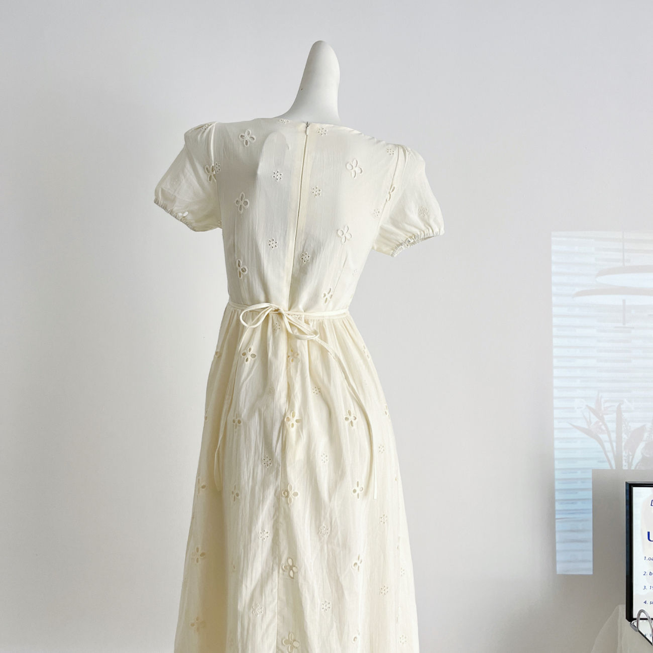 digm法式方领露背收腰连衣裙复古别致小心机纯色包袖显瘦中长裙