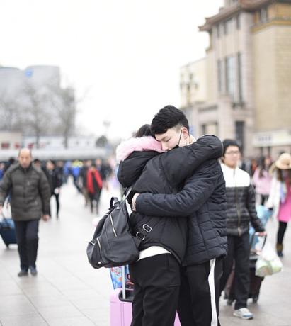 临近过年,也是情侣们的分别时,难分难舍的一幕在车站上演着