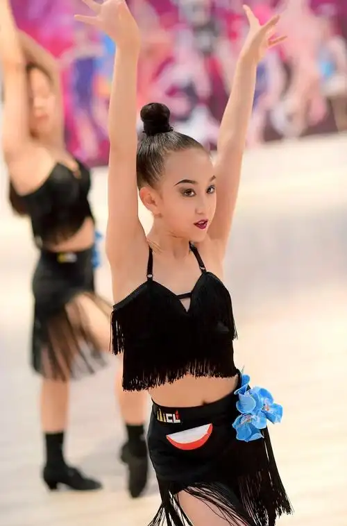 hzcl女孩拉丁裙舞蹈服儿童拉丁舞服装女童拉丁舞裙女孩练功服少儿比赛