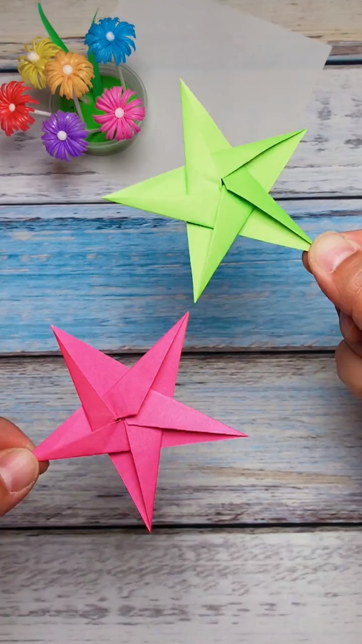 用正方形彩纸轻松折立体五角星-度小视