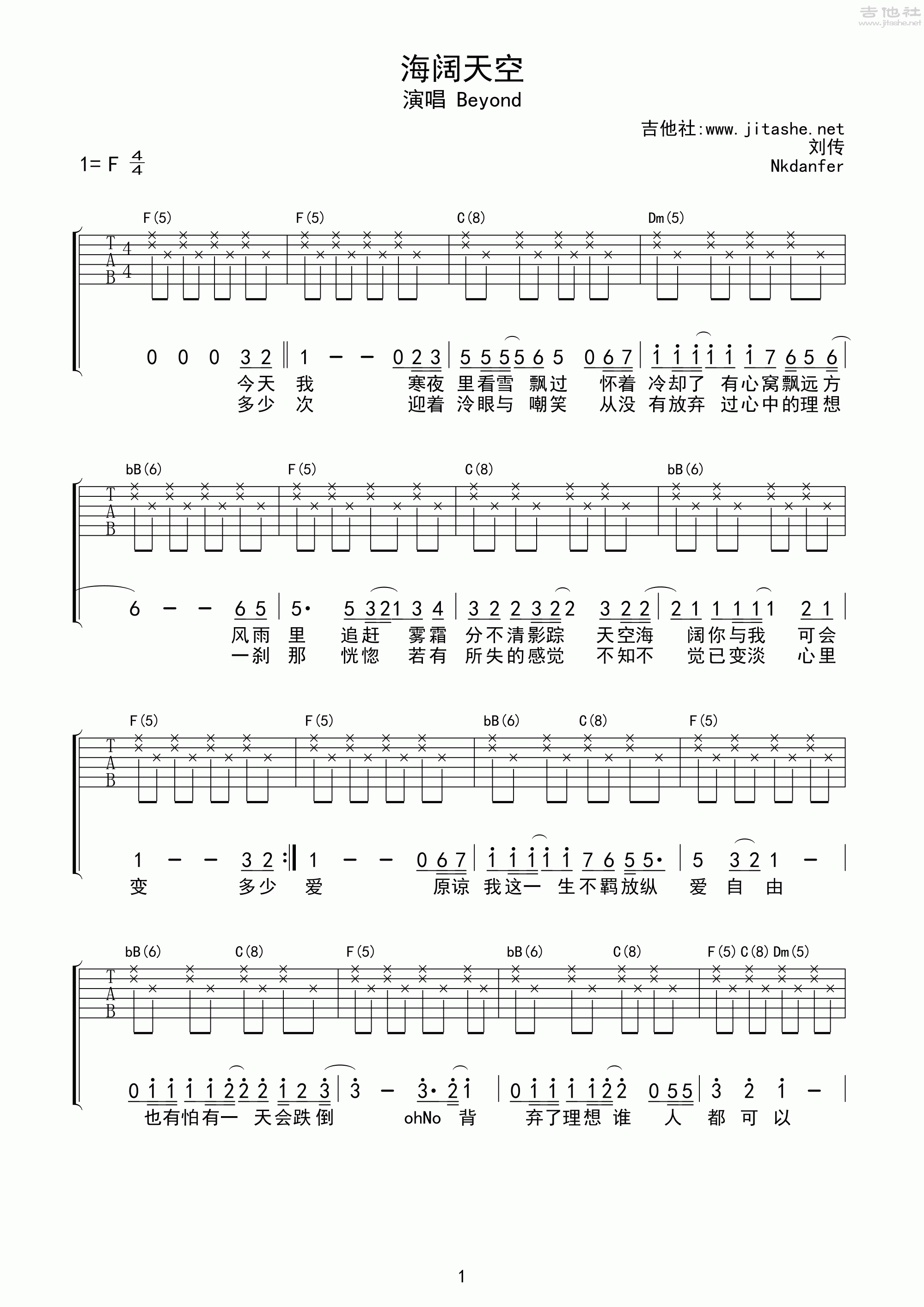 海阔天空吉他谱(图片谱,弹唱,刘传)_beyond_海阔天空01.gif