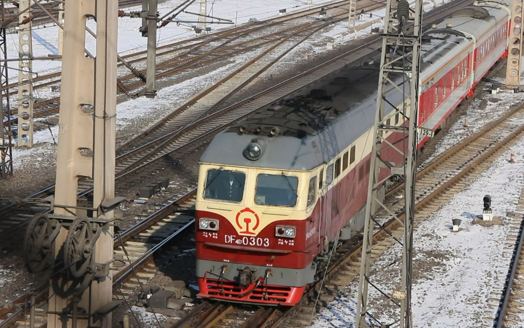 【原色福利】df4d 0303牵引乱七八糟的红皮车驶入四平站(2014 2)