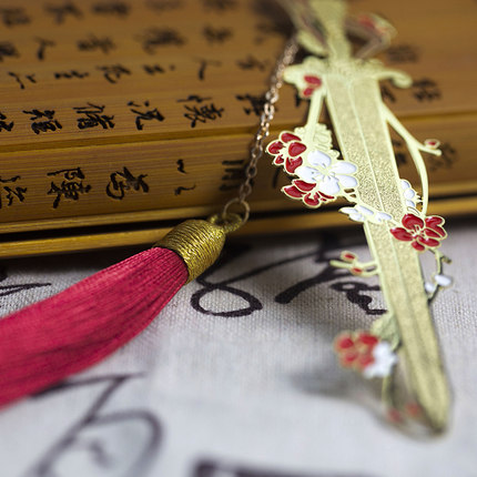 梅花宝剑金属书签中国国风古典文艺创意流苏书签