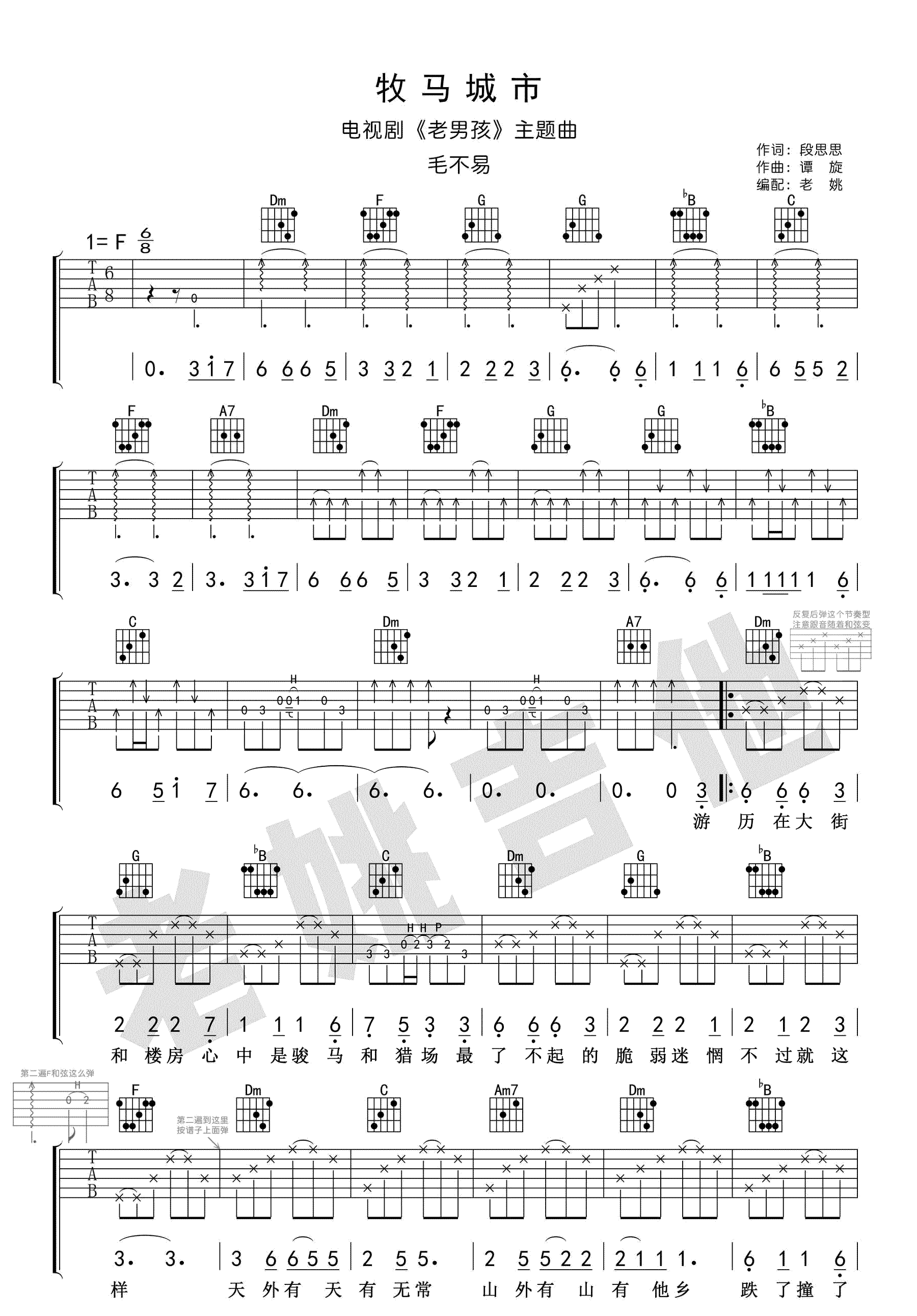毛不易牧马城市吉他谱电视剧老男孩主题曲图片谱