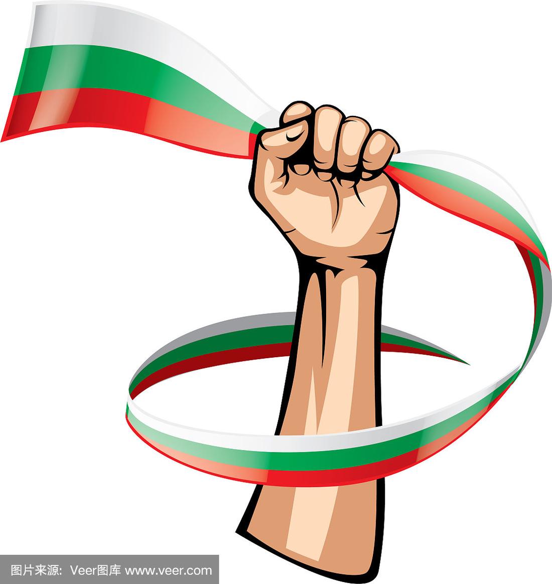 白色背景上的保加利亚国旗和手