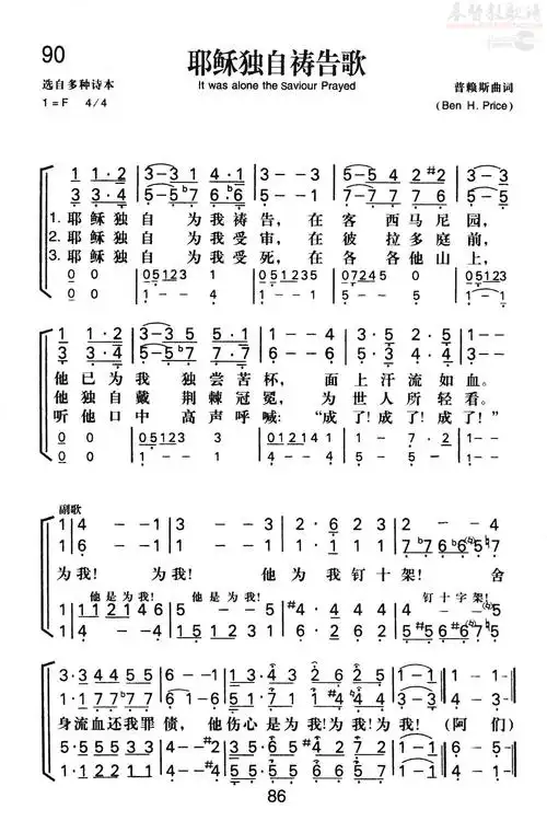 下载耶稣独自祷告歌 歌谱合唱四声部简谱 五线谱 新编赞美诗第90首