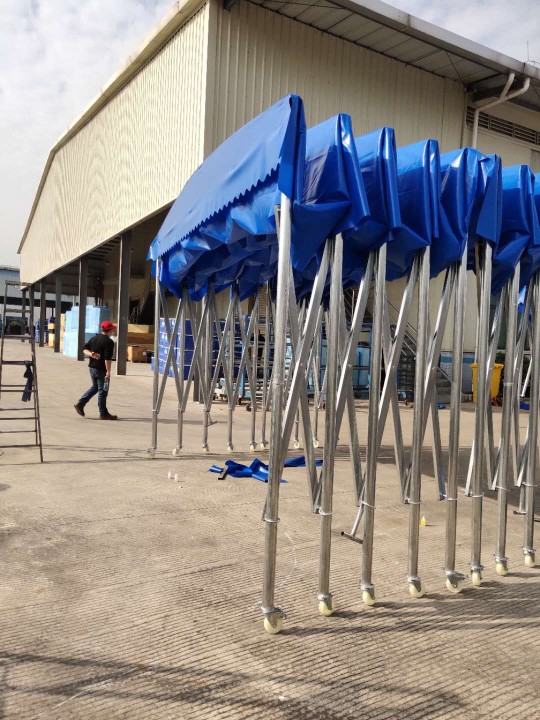 菏泽移动大型仓储推拉篷电动轨道折叠棚收折帆布雨蓬厂家定制