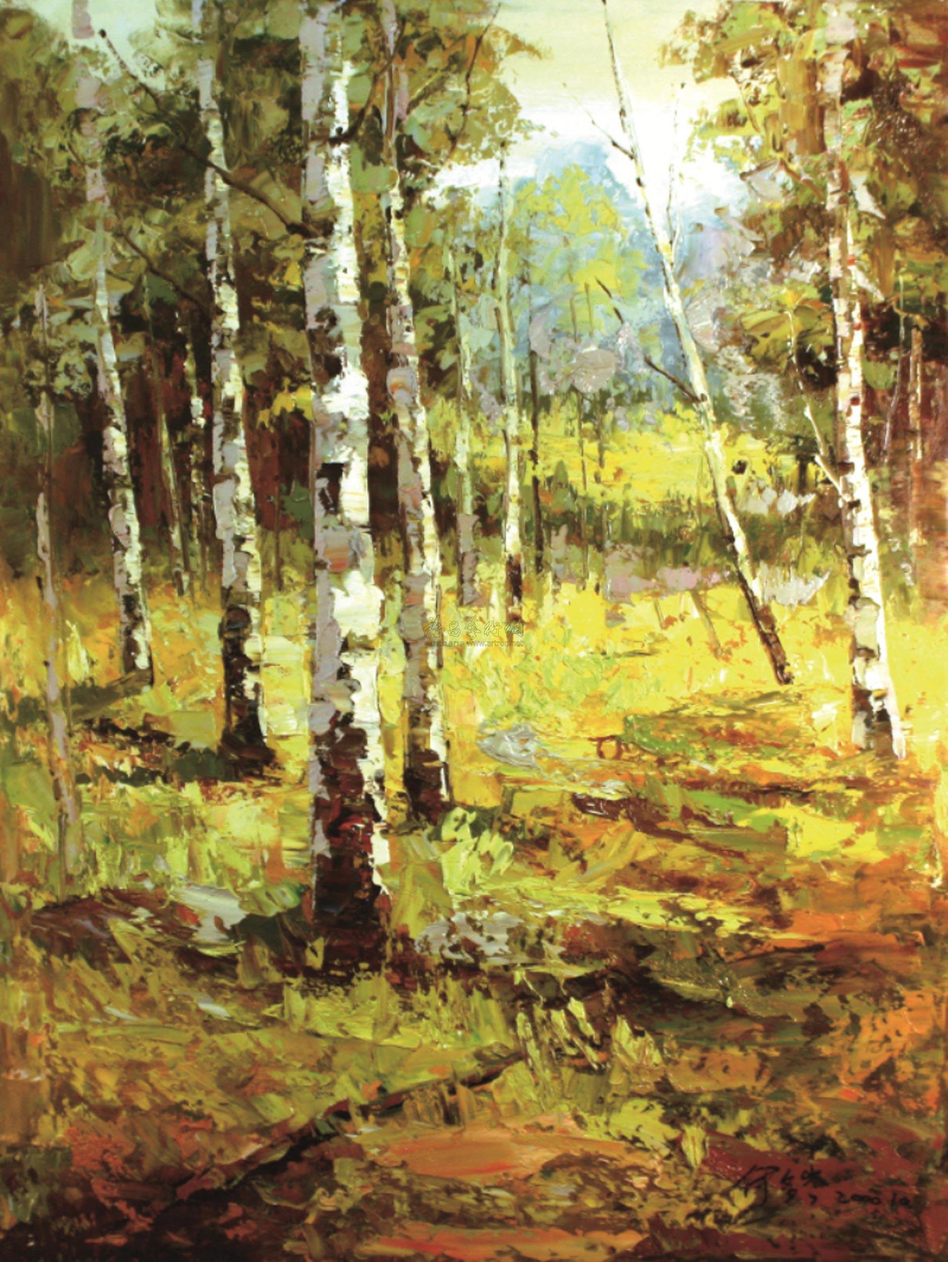 油画 深秋树林图片