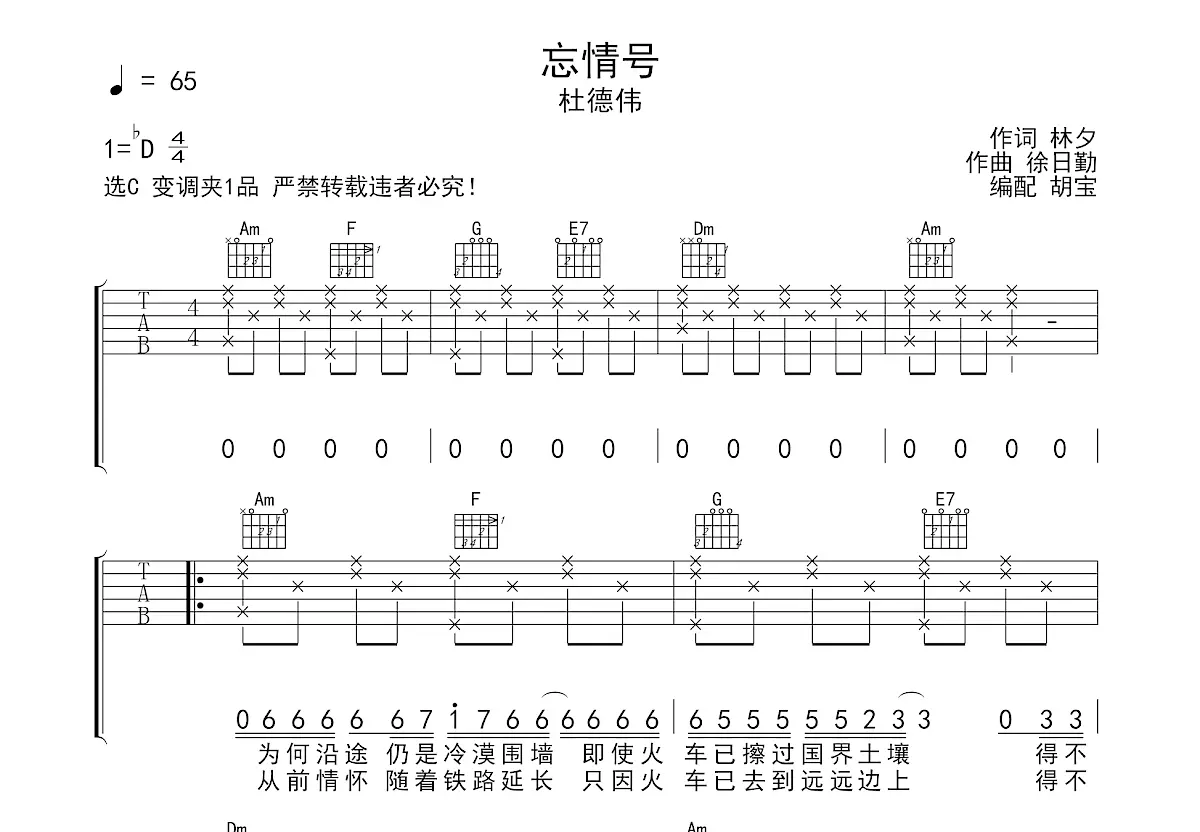 忘情号吉他谱_杜德伟_c调弹唱81%原版 - 吉他世界