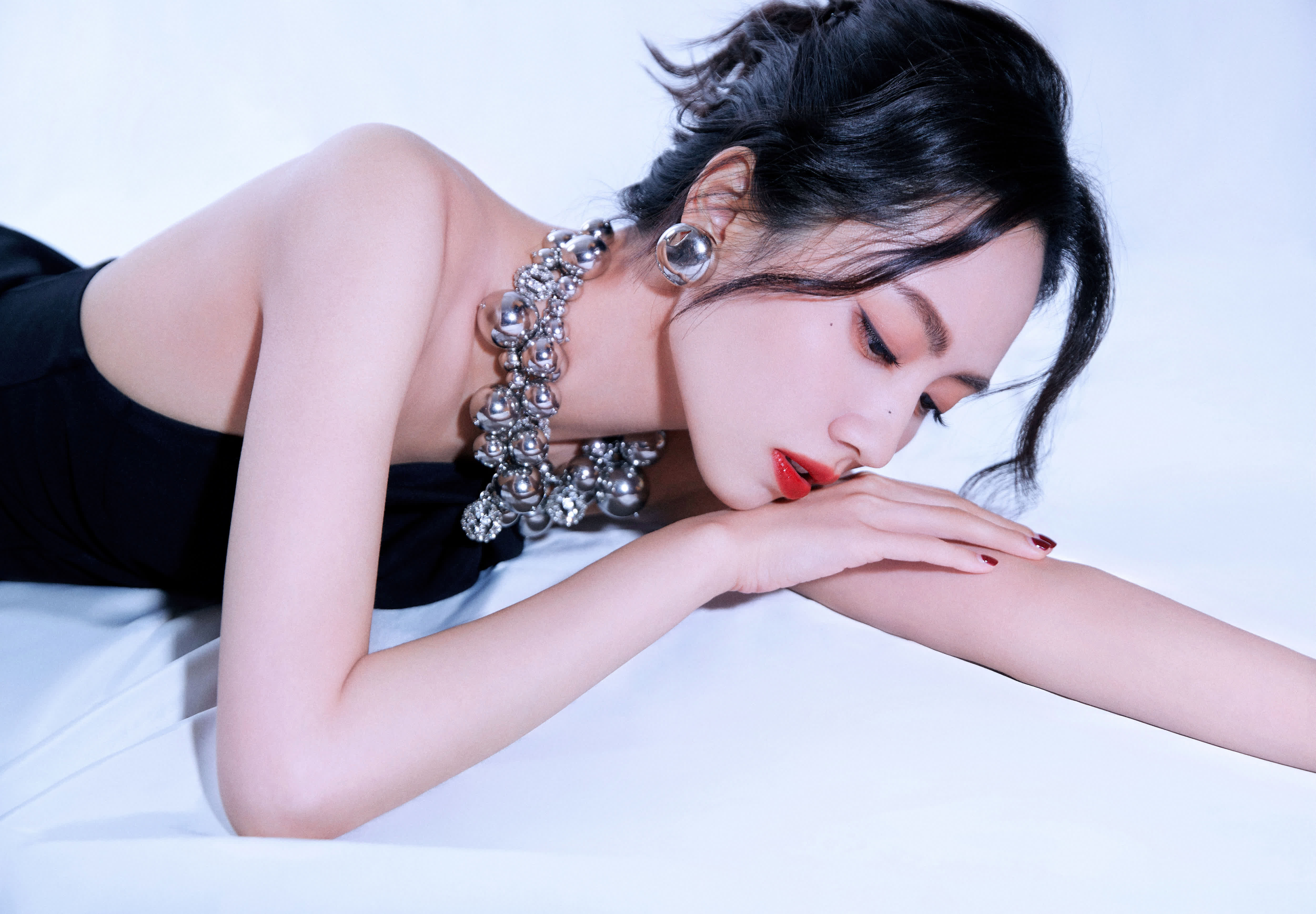 刘惜君拍摄的时尚写真大片,身穿一袭黑色抹胸高开叉长裙 –第 5 页–