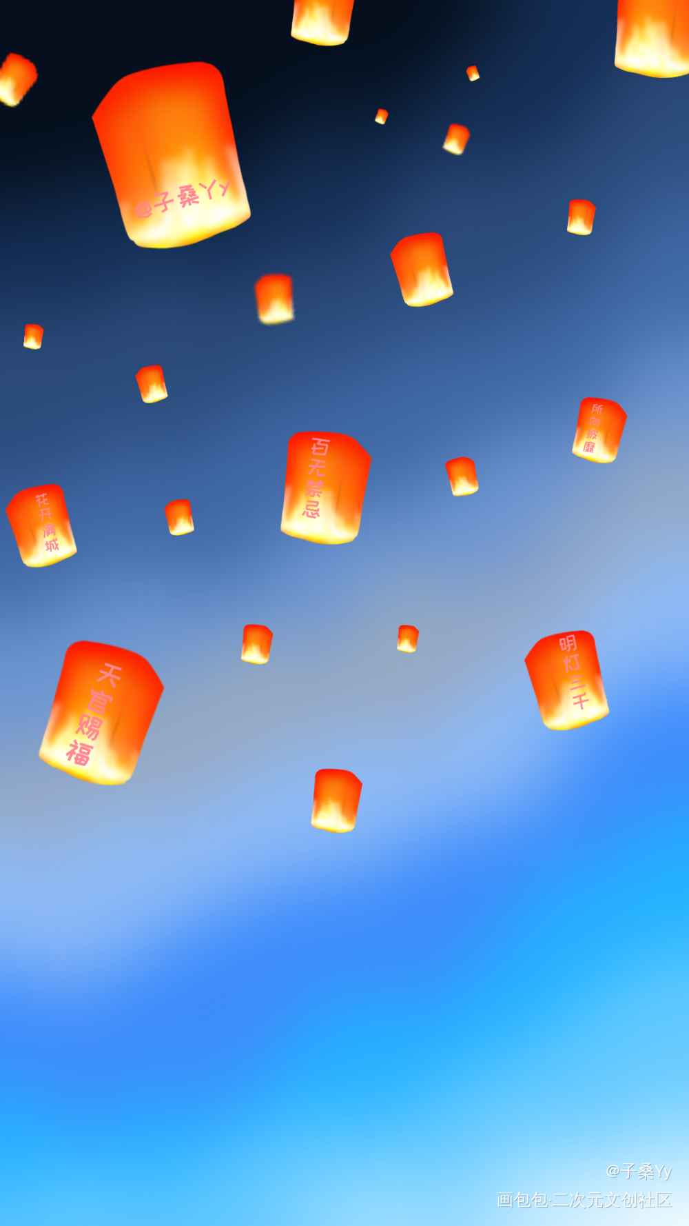 明灯三千图片手绘