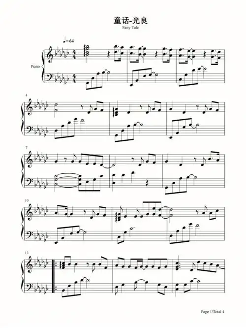 童话完整版,#钢琴谱 #童话 #五线谱 - 抖音