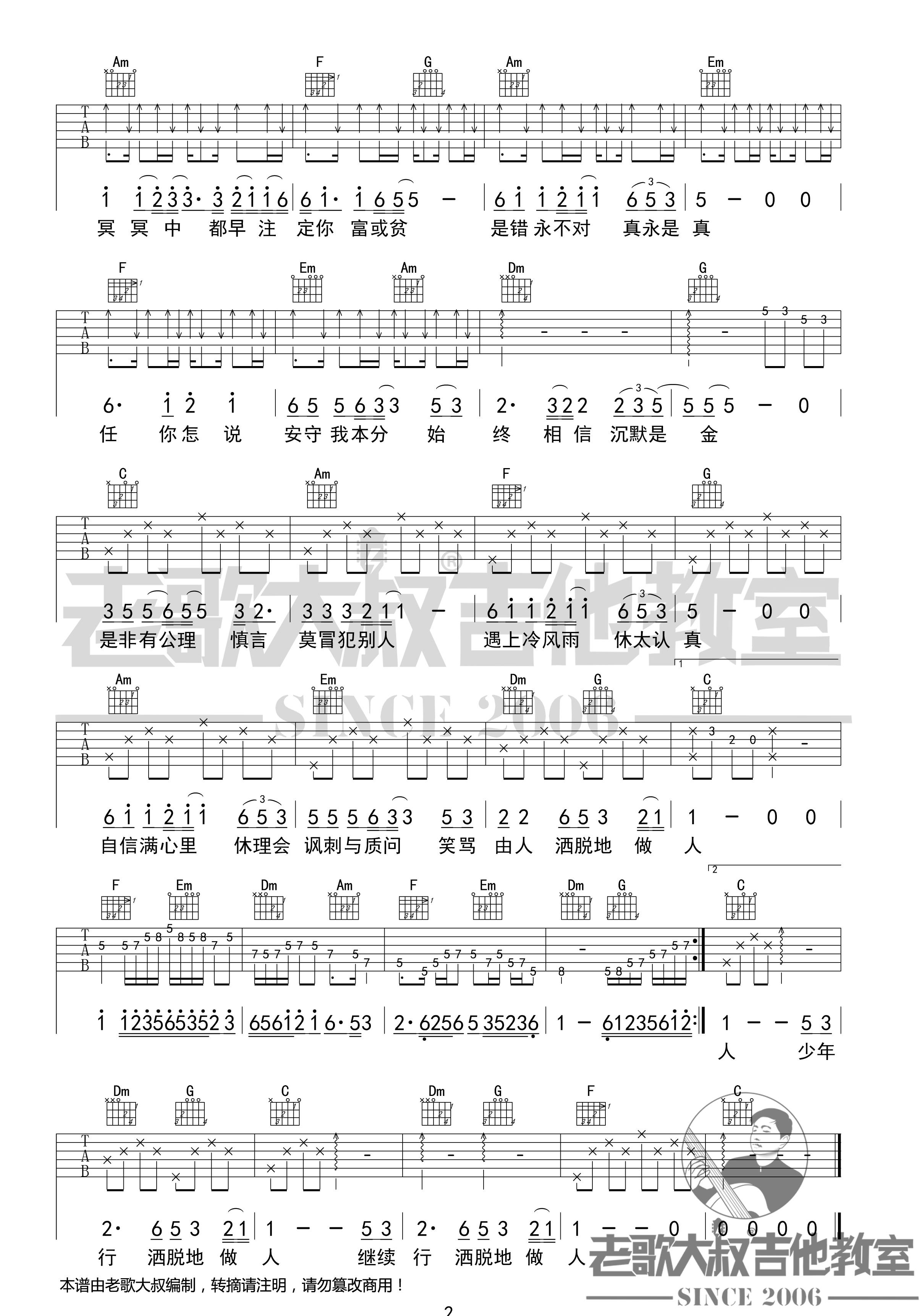 沉默是金吉他谱(图片谱,老歌大叔吉他,弹唱,双吉他版)_张国荣(leslie