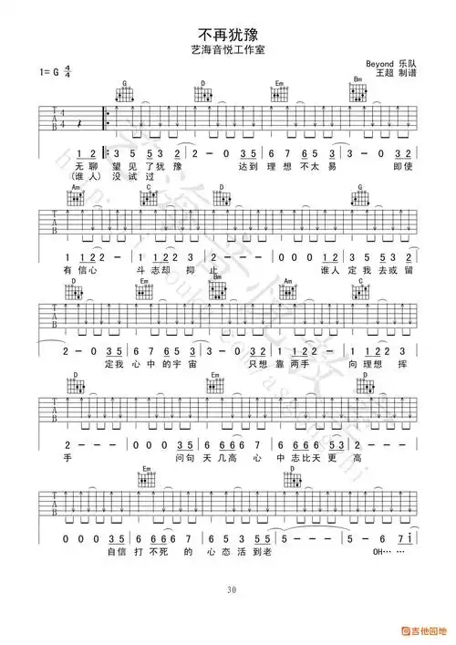 不再犹豫吉他谱 - beyond - g调吉他弹唱谱第1张
