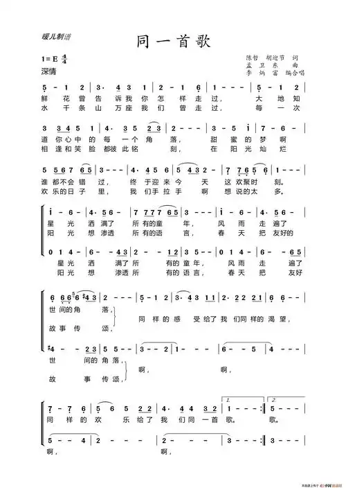同一首歌(合唱谱)_歌谱简谱_哆来咪123曲谱网