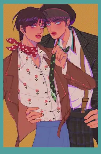 一张双人的插画稿
