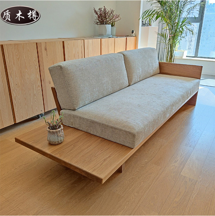 日式大板储物沙发抽屉沙发北欧现代简约白蜡木实木沙发冬夏两用