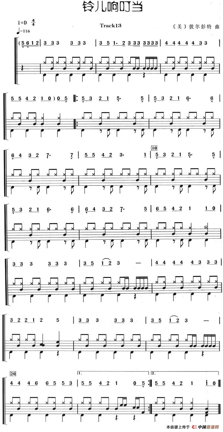 铃儿响叮当(架子鼓,主旋律 鼓谱)