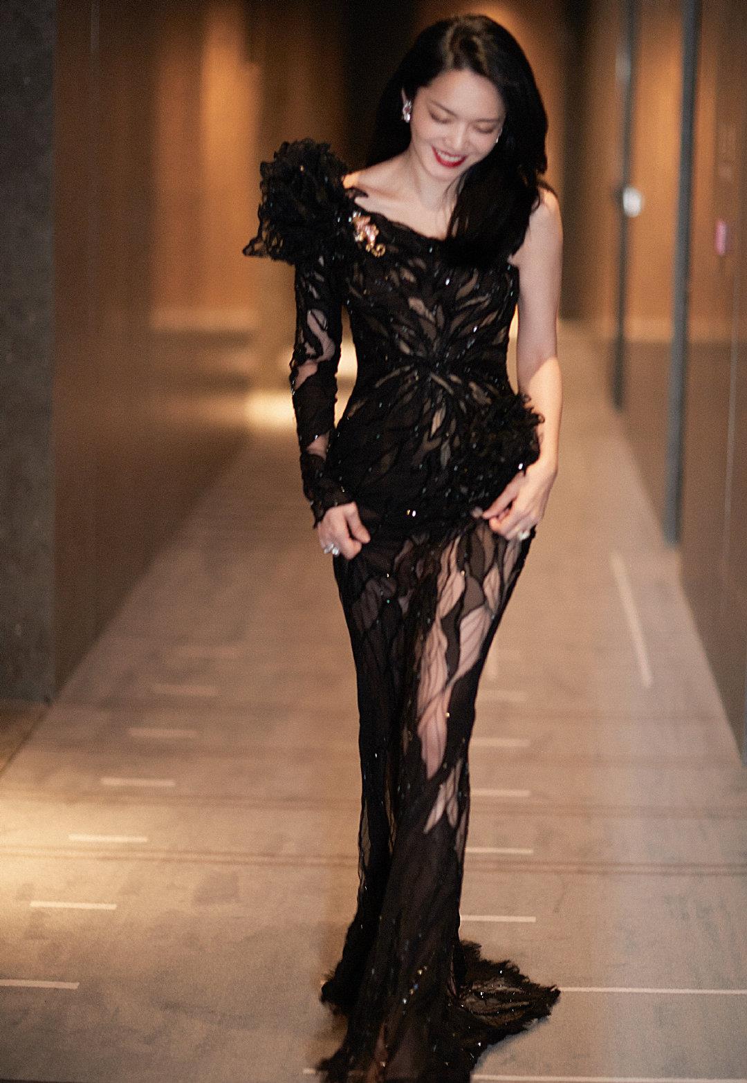 姚晨身穿黑色连衣裙展现曲线美身材_造型_珠宝_魅力