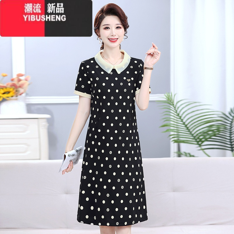 洋气波点雪纺连衣裙女夏中年妈妈大码宽松遮肚子显瘦减龄气质