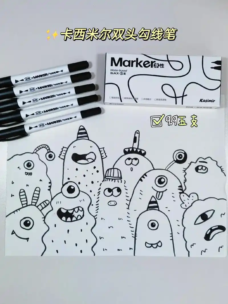小朋友平时#画画 手抄报都会用到的#勾线笔 粗细双头可用,水 - 抖音