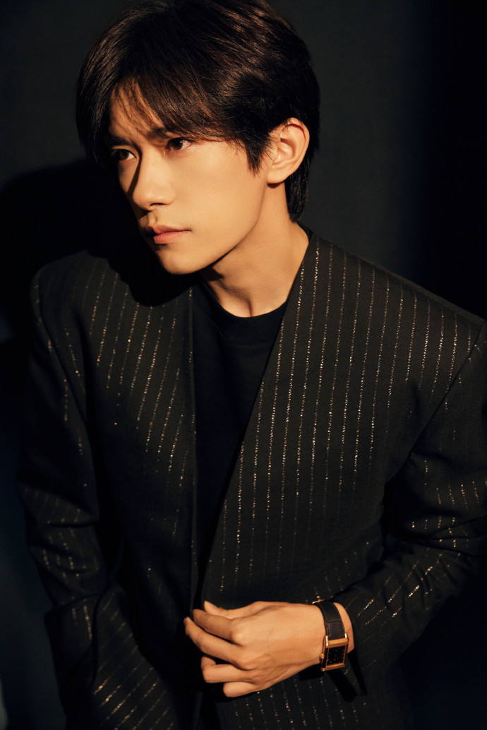 烊千玺参加第28届金鸡百花电影节拍摄写真,身穿经典黑色西装套装帅气