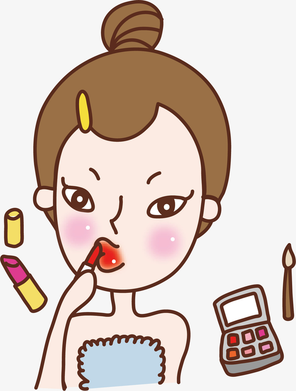 正在涂口红的女孩矢量素材