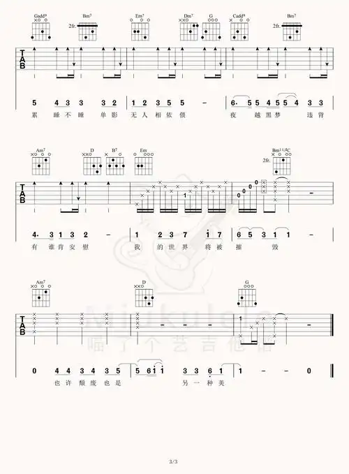 《世界末日》吉他谱_g调原版六线谱_吉他弹唱教学示范(女版)_周杰伦