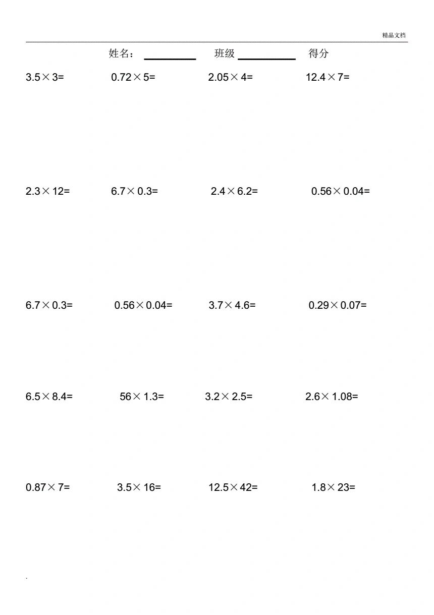 五年级小数乘法计算竖式100道