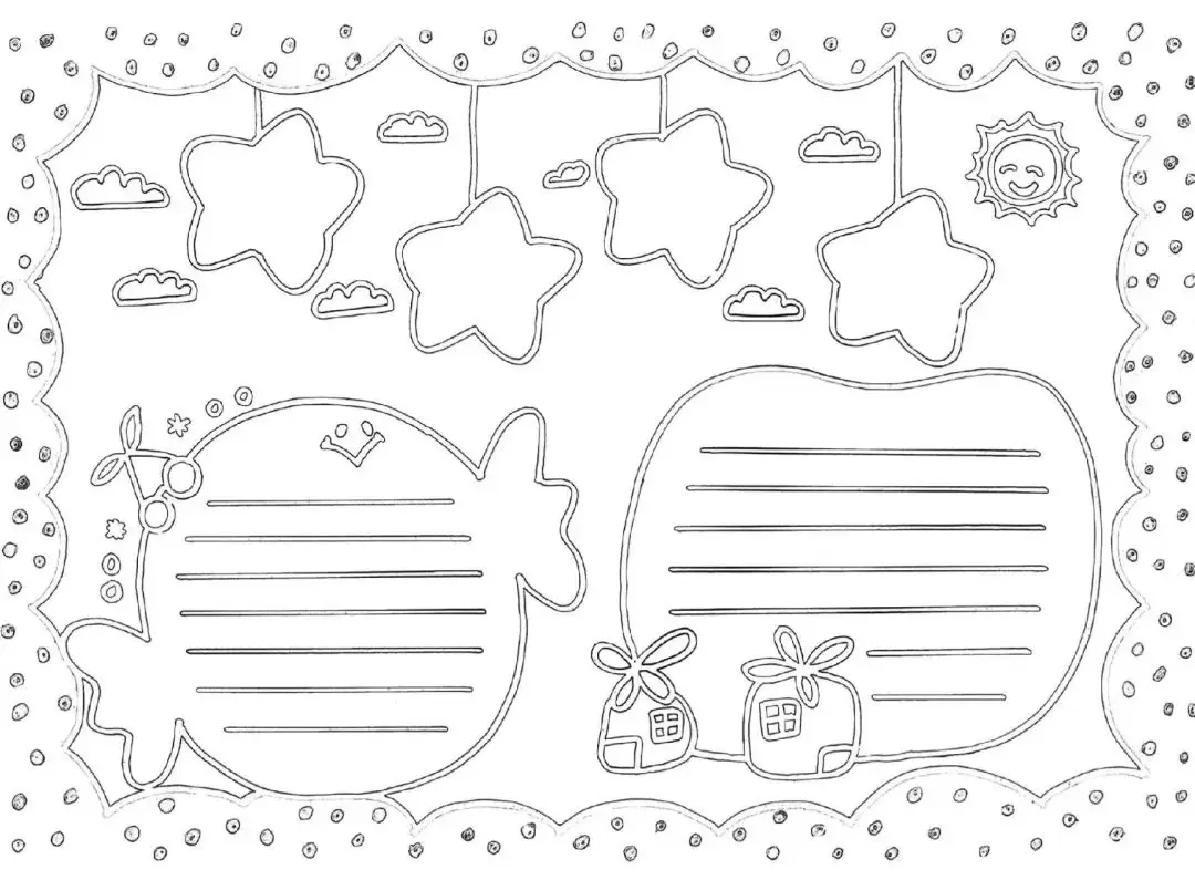 通用手抄报模板(黑白可打印)描边涂色