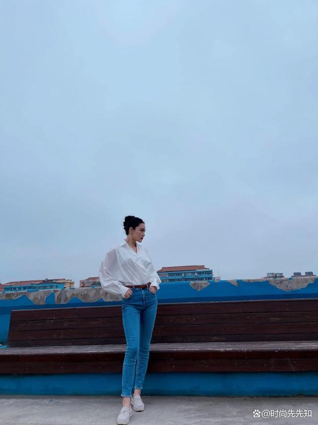 大家都在疯传一张照片,里面的张馨予穿着白衬衫,搭配淡蓝色牛仔裤和