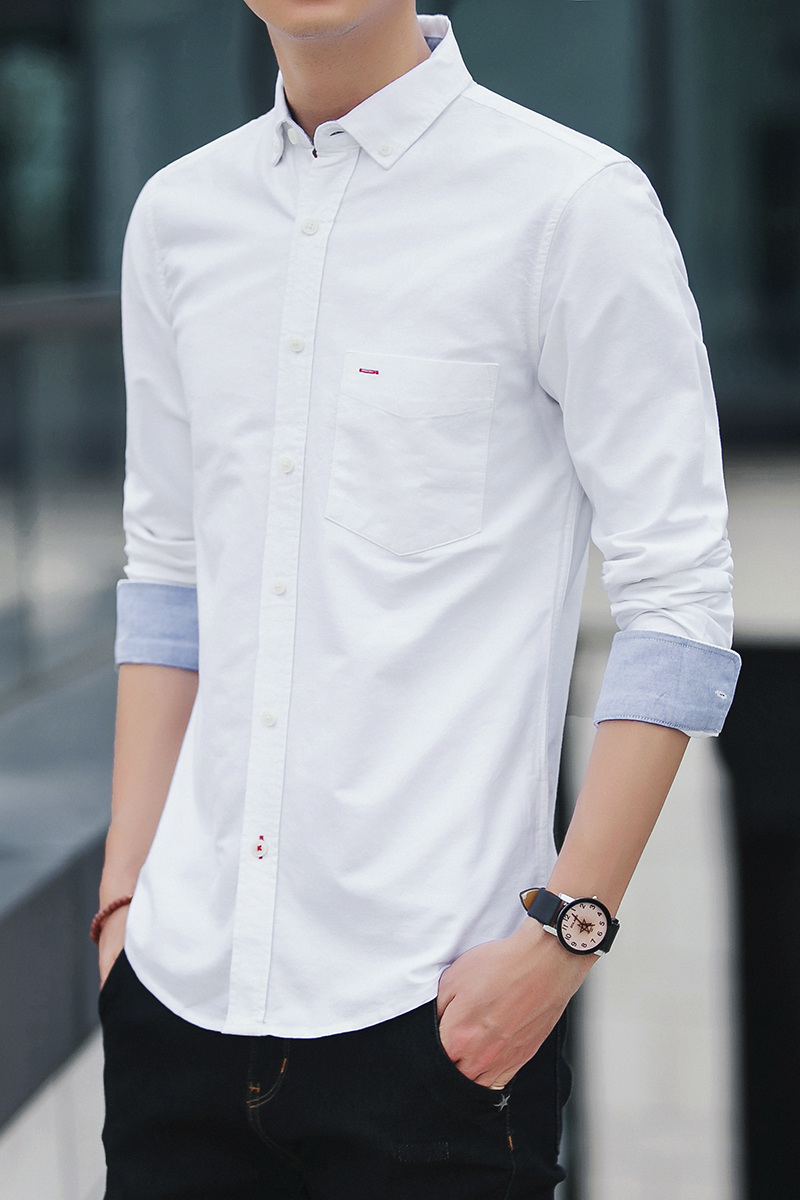 纯棉加大码长袖衬衫男内搭牛津纺寸衫春装休闲韩版潮流帅气修身衬衣