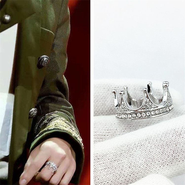 我们的歌肖战同款戒指镶钻皇冠设计银色超闪指环个性复古潮流简约