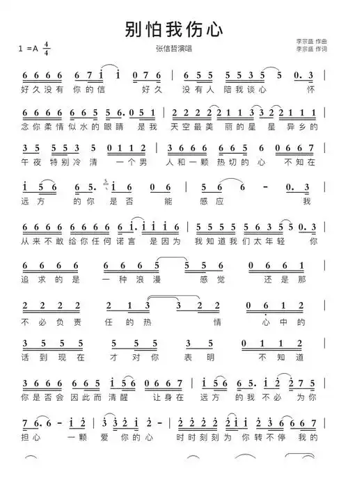 [通俗曲谱] 别怕我伤心歌词 张信哲:《别怕我伤心》曲谱曲谱