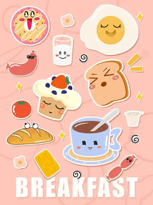 120张卡通涂鸦风食物贴纸ins小清新创意高颜值手账文具装饰小贴画