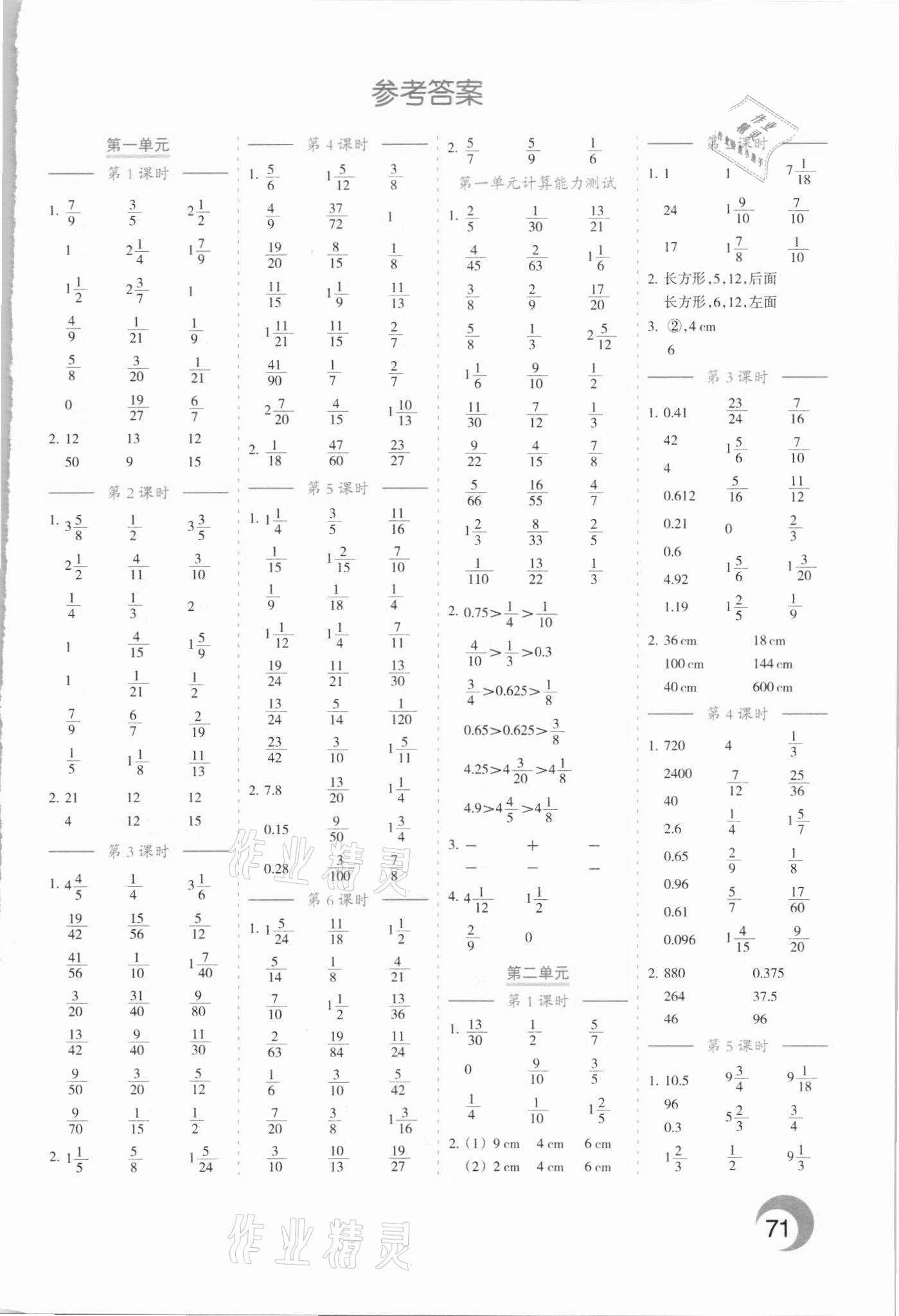2021年小学数学计算高手五年级下册北师大版四川教育出版社答案——青