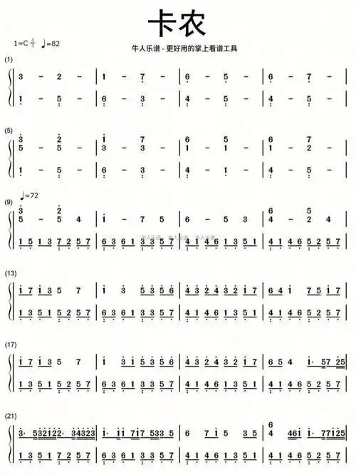 《卡农》钢琴谱简谱