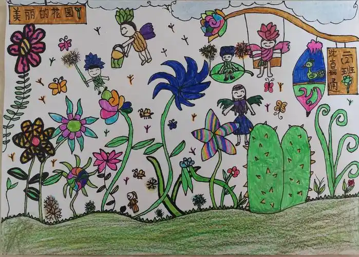 幼儿绘画作品小花园-儿童油画棒作品-小鸭子儿童乐园littleducks.cn