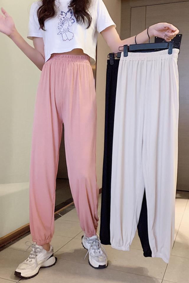 冰丝女裤运动裤子女宽松束脚夏季新款高腰显瘦百搭休闲哈伦灯笼裤