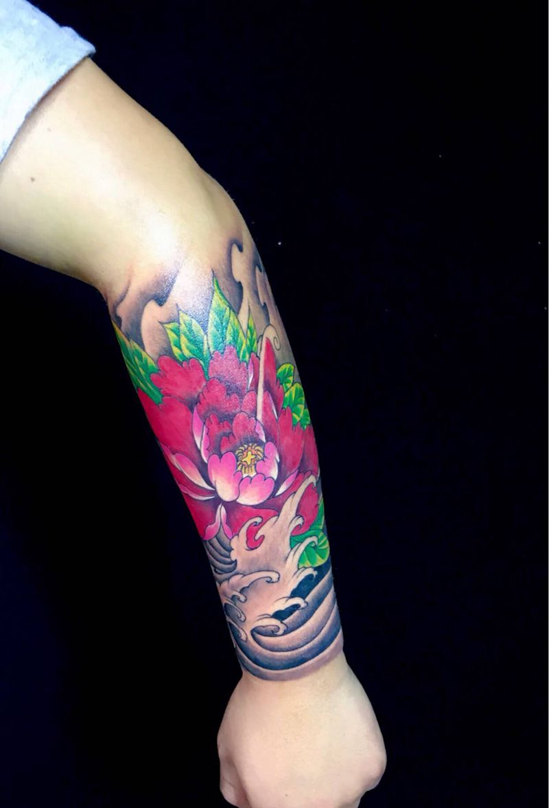 牡丹花臂纹身图片_手臂纹身图案