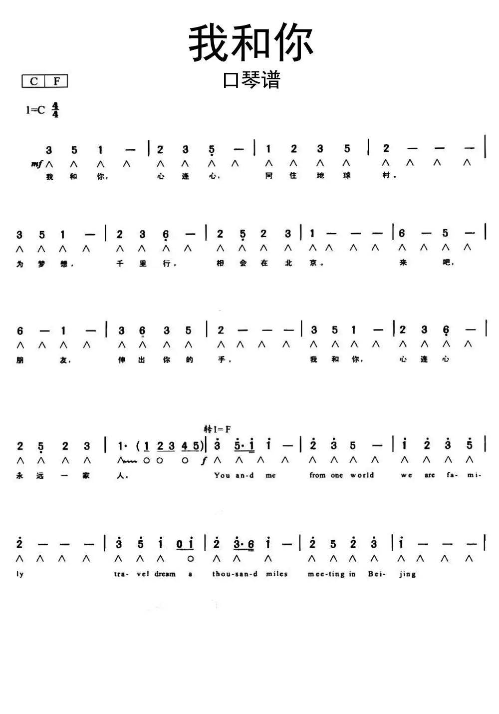 我和你口琴谱乐谱简谱-虫虫乐谱