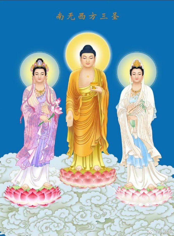 晨起礼佛# 西方三圣驾临 诚心礼佛,事事遂心,百愿百成0505